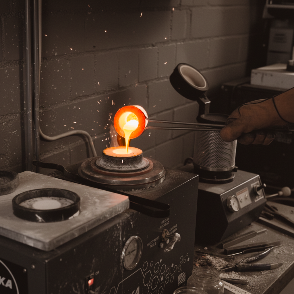 Your piece begins as raw gold or silver: sheet, wire, or grain. Once melted, it's poured into the molds.