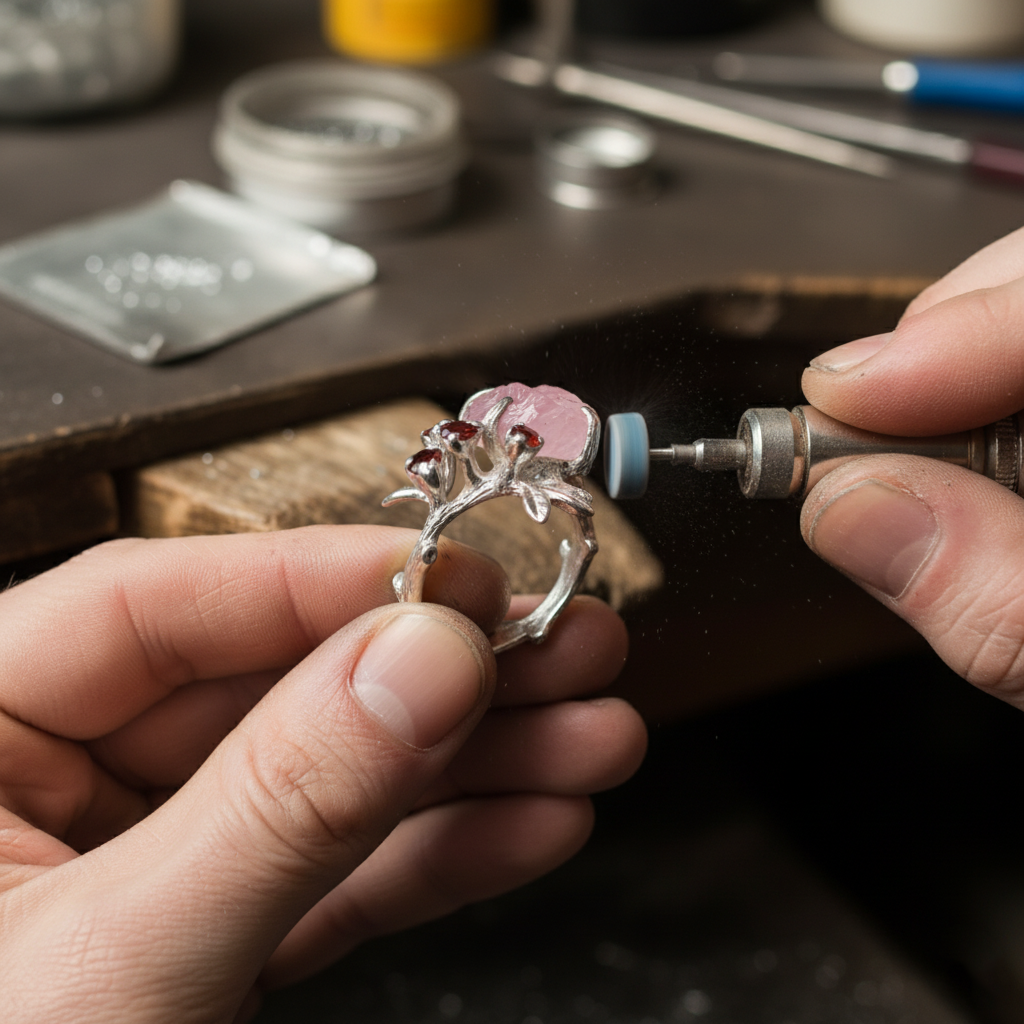 Then we cut, shape, and polish the metal using techniques that take years to master. Hammering, sawing, filing, and soldering all happen by hand. Every action affects how your piece will feel on the body. This is why handmade pieces often feel “alive” compared to factory-made jewelry.