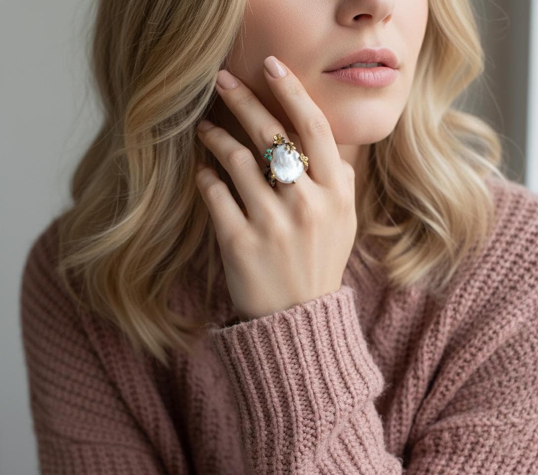 A modern yet earthy statement ring — perfect as a gift for mom, plant lovers, or women who cherish timeless handmade jewelry.