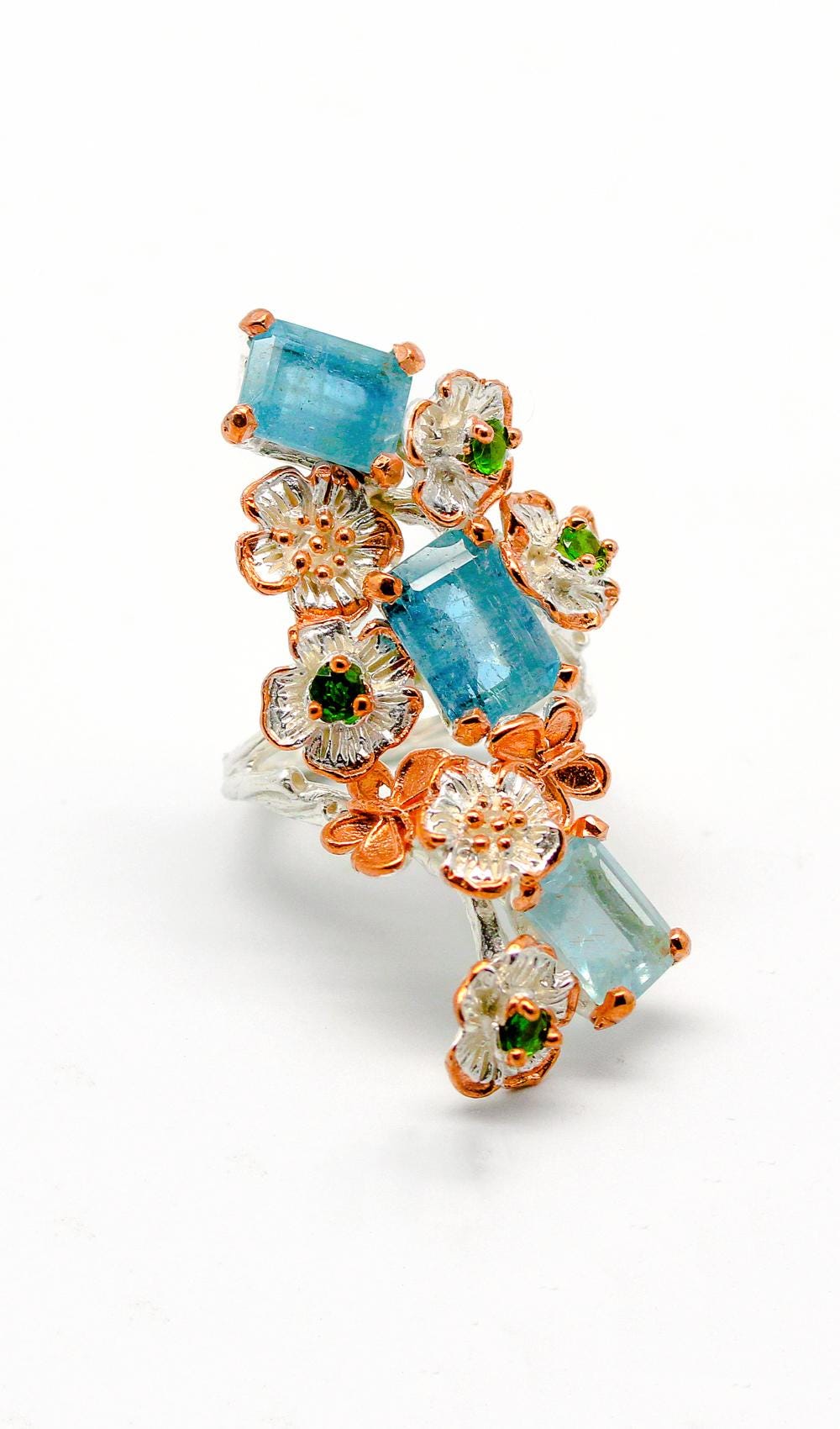 This blue apatite ring blooms with natural charm in a floral silver design inspired by garden beauty and feminine elegance. Handcrafted with a vibrant blue gemstone, it reflects Hawaiian warmth and cottagecore fantasy aesthetics, symbolizing creativity and renewal. Ideal as a statement ring, birthday gift, or custom flower ring, it merges artisan detail with timeless gemstone brilliance. Perfect for women who love fantasy-inspired jewelry, this piece captures the enchantment of nature through every petal, curve, and luminous blue spark.