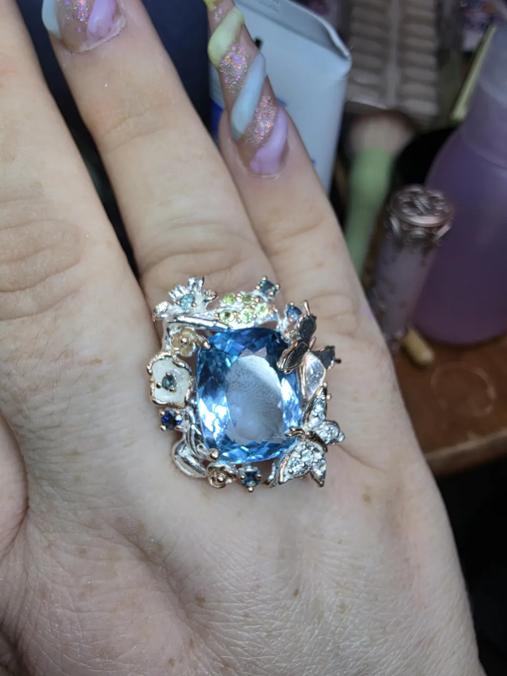 925 silver Swiss blue topaz ring. November birthstone jewelry with bold, feminine, cottagecore style. Perfect gift for wife, anniversary, or everyday wear.