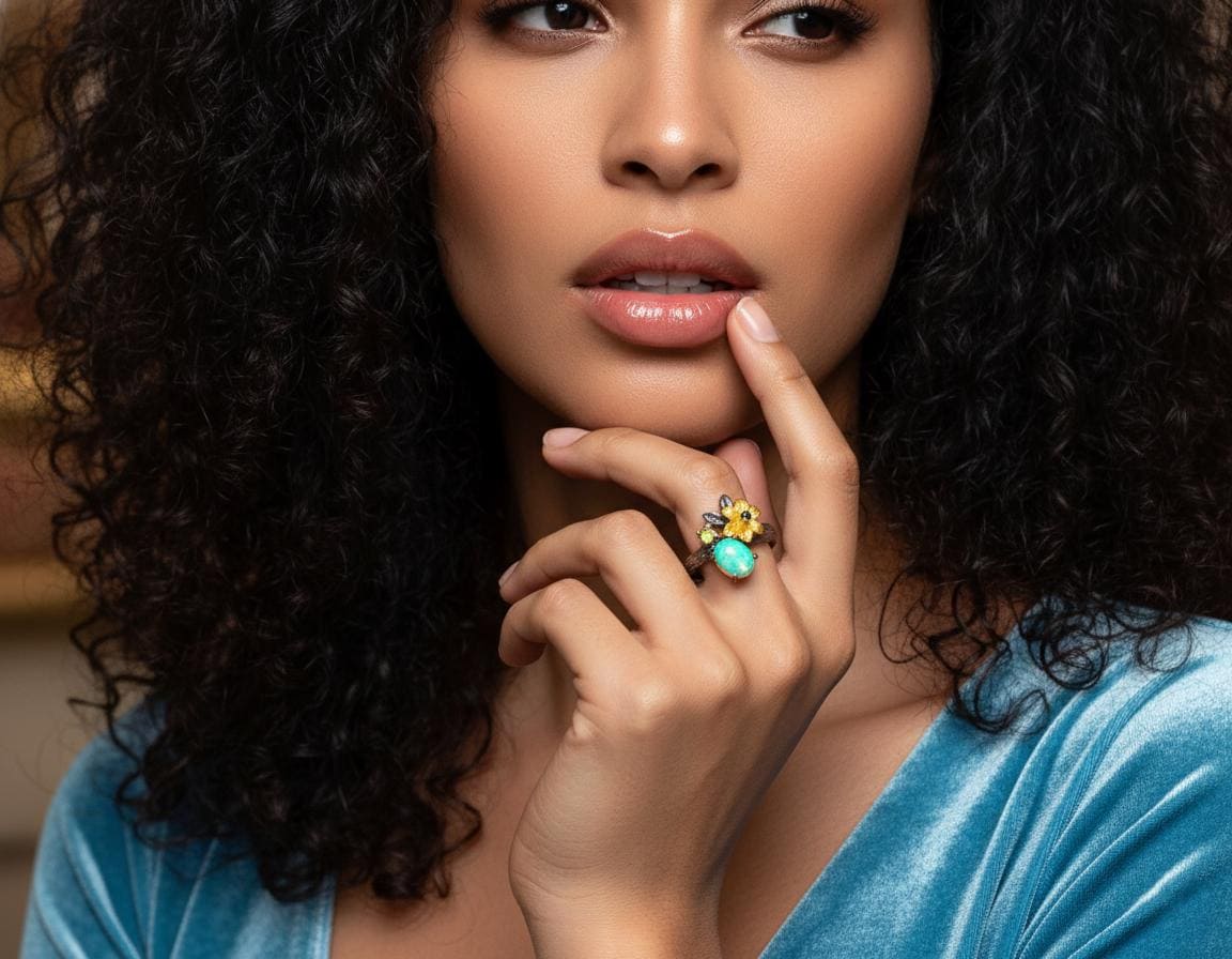 A nature-inspired rainbow opal ring that feels both mystical and grounded. Designed with a detailed tree branch texture and subtle mixed-metal tones, it celebrates organic elegance and individuality. The October birthstone glows with shifting color, symbolizing creativity and balance. A thoughtful Christmas gift or signature thumb ring for her. It is handmade with love for nature souls and dark-aesthetic dreamers.