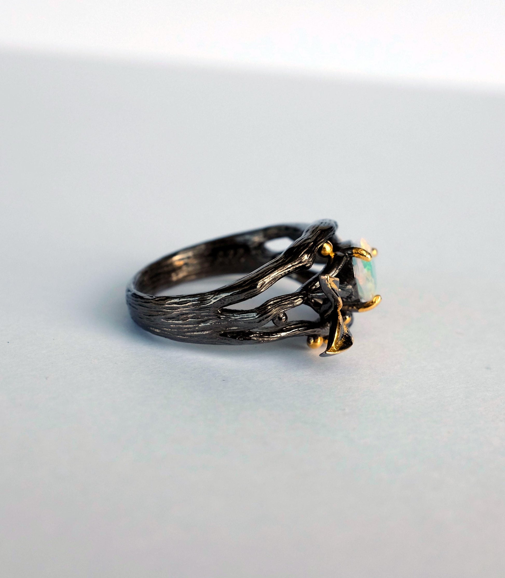 925 Sterling Silver Black Opal Branch Ring