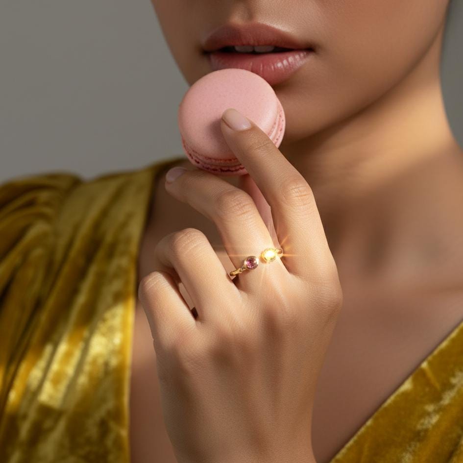 This Toi et Moi ring features pink and green tourmaline gemstones, symbolizing harmony and affection. Handcrafted in dainty silver or gold, it celebrates the October birthstone with a minimalist two-stone design perfect for daily wear or as a gold promise ring. Ideal for women who appreciate delicate handmade jewelry, it blends modern simplicity with timeless emotion. A thoughtful gift for birthdays, anniversaries, or meaningful occasions, this piece captures elegance and sentiment in one refined design.