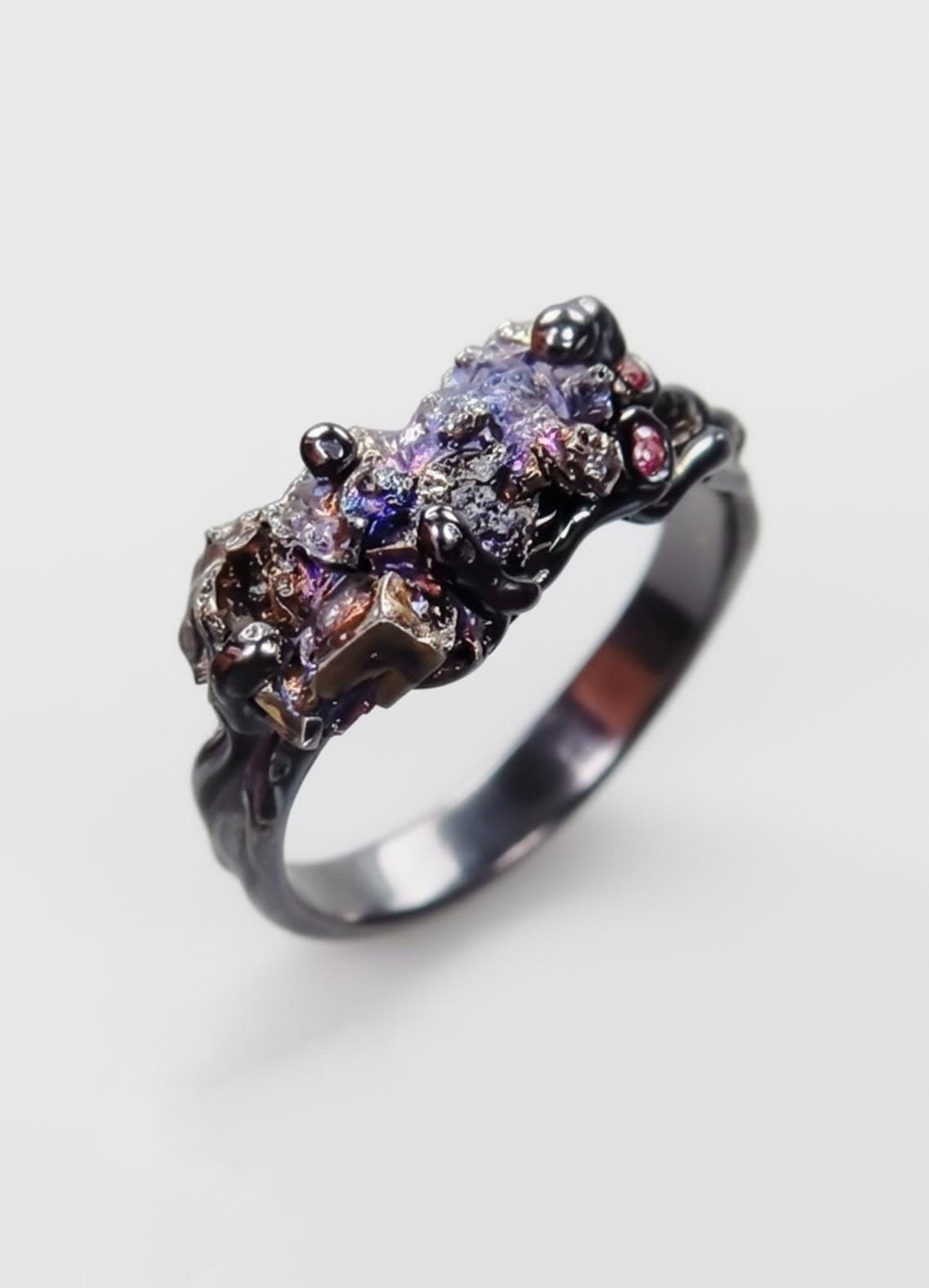 925 Sterling Silver Raw Bismuth Black Ring
